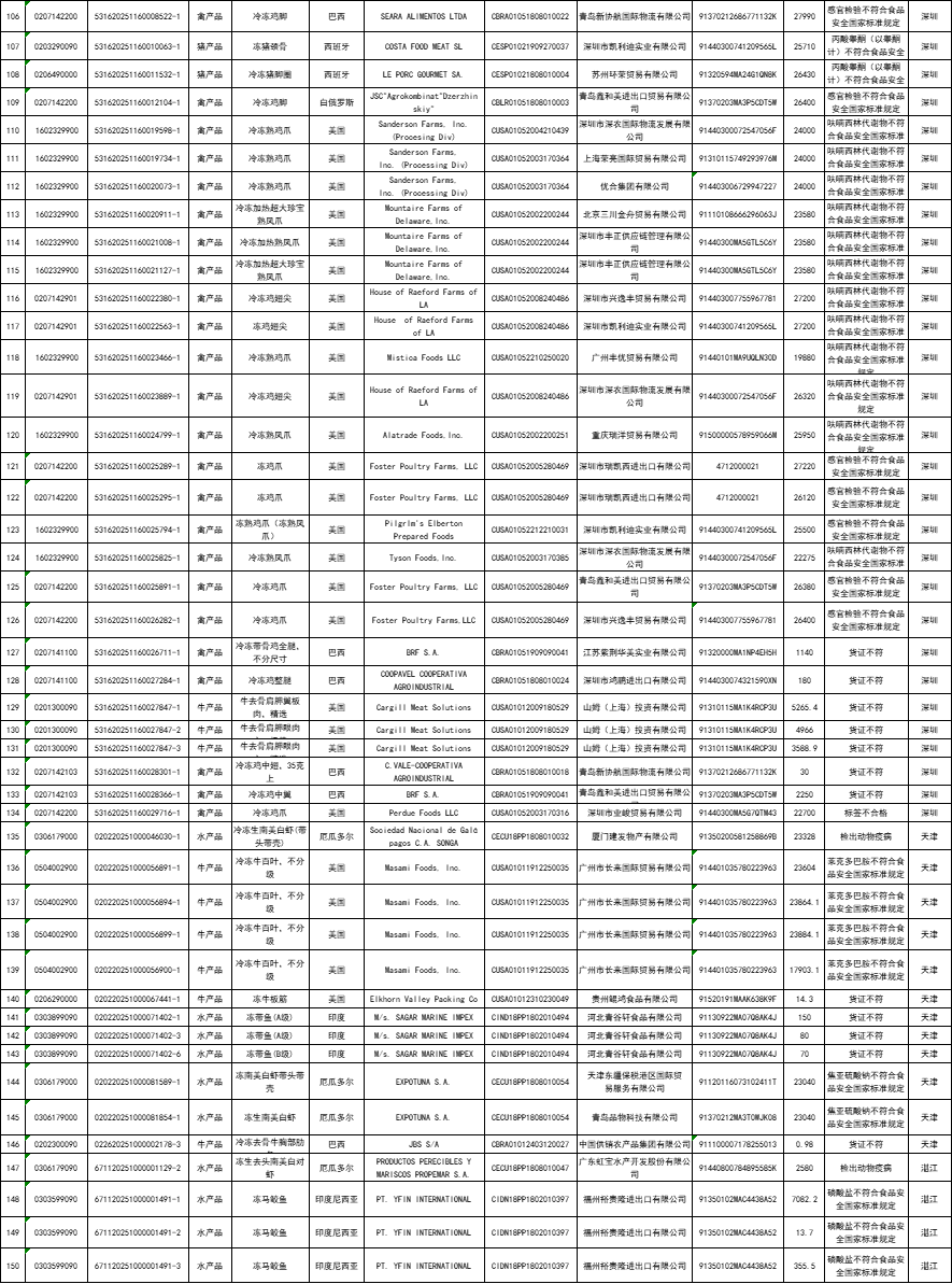 2025年5月全国海关在口岸监管环节检出安全卫生等项目不合格并未准入境食品已在口岸依法做退运或销毁处理。