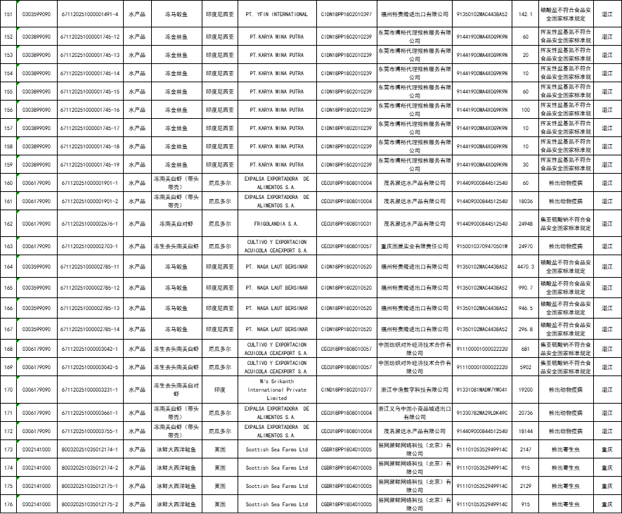 5月全国未准入境猪、牛、羊、禽、水产品共计176票