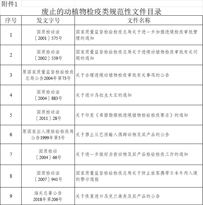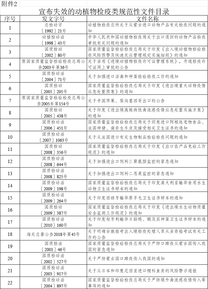 根据工作实际,海关总署决定废止和宣布失效部分动植物检疫类规范性文件,具体文件目录见附件1、2。本公告自发布之日起生效。