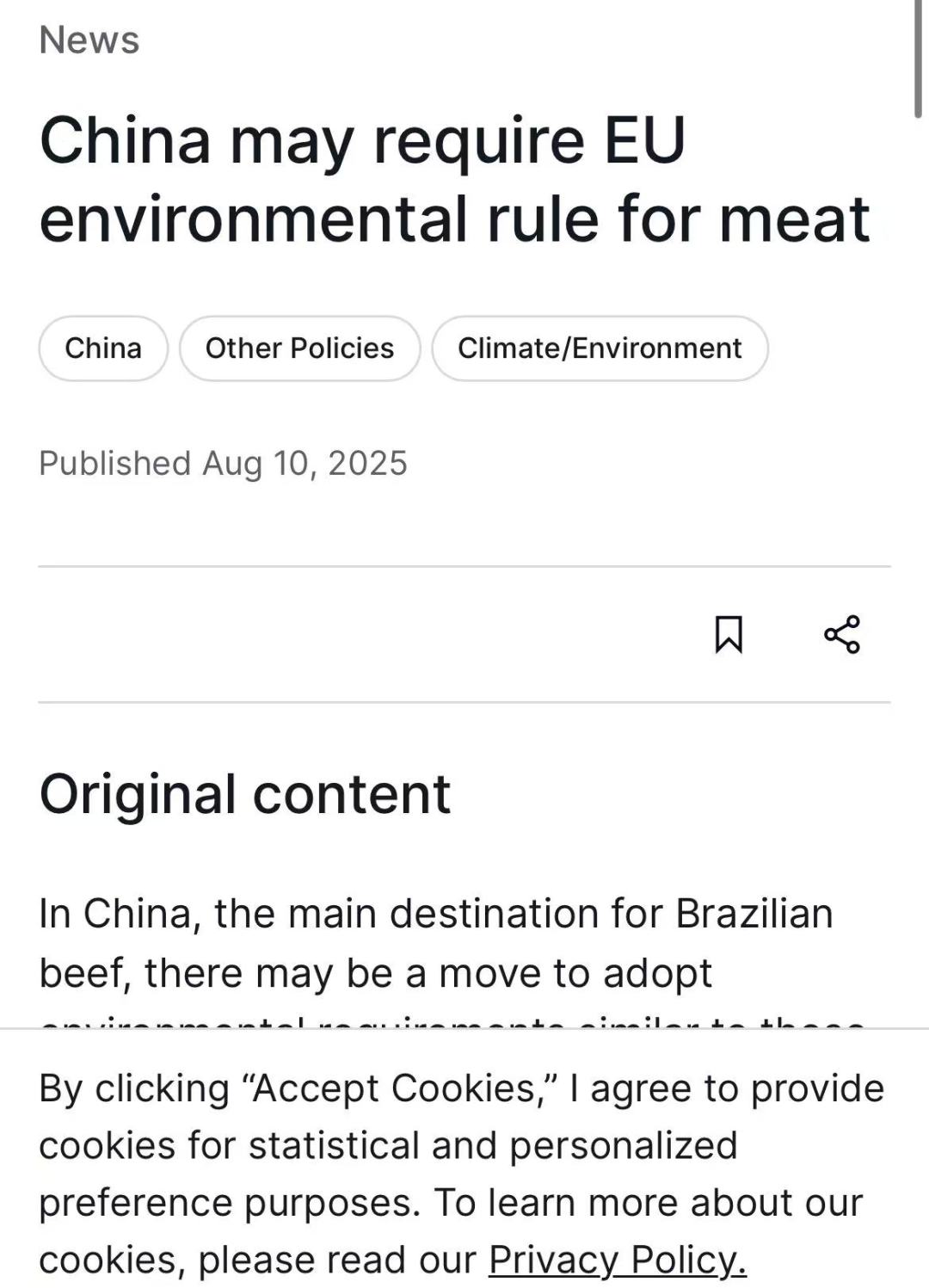 01 | 中国拟推欧盟式环保新规 巴西牛肉出口面临绿色转型挑战 |