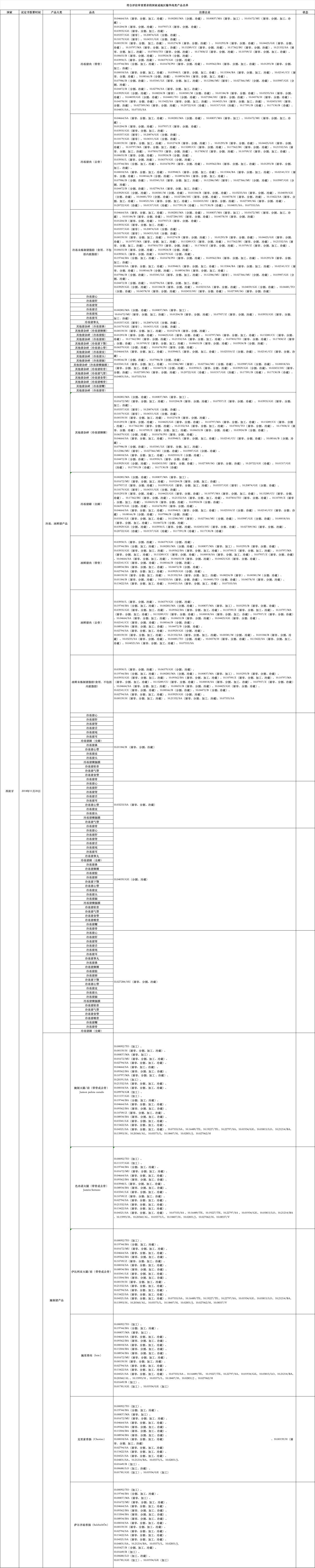 近日,海关总署更新《符合评估审查要求的国家或地区输华肉类产品名单》:
