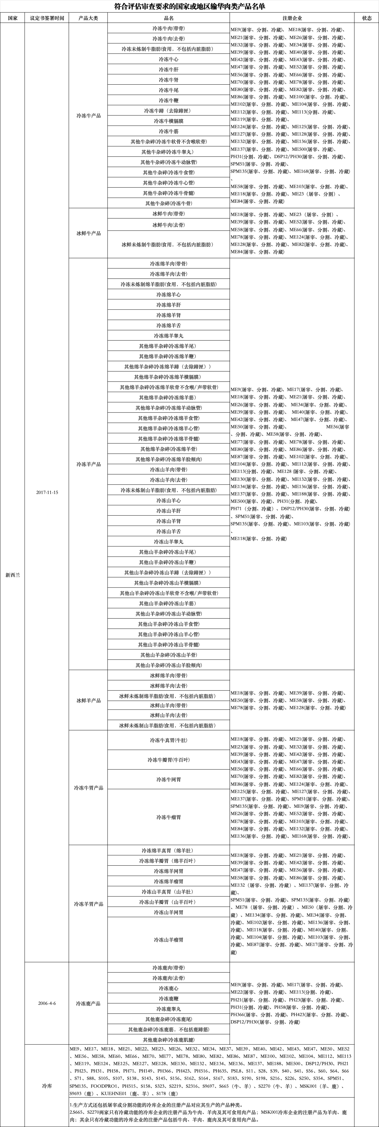 3.新增新西兰1家注册编号为KUEHNE01(冷库)羊肉企业自2025年8月19日及之后贮存的符合中国要求的肉类产品输华。