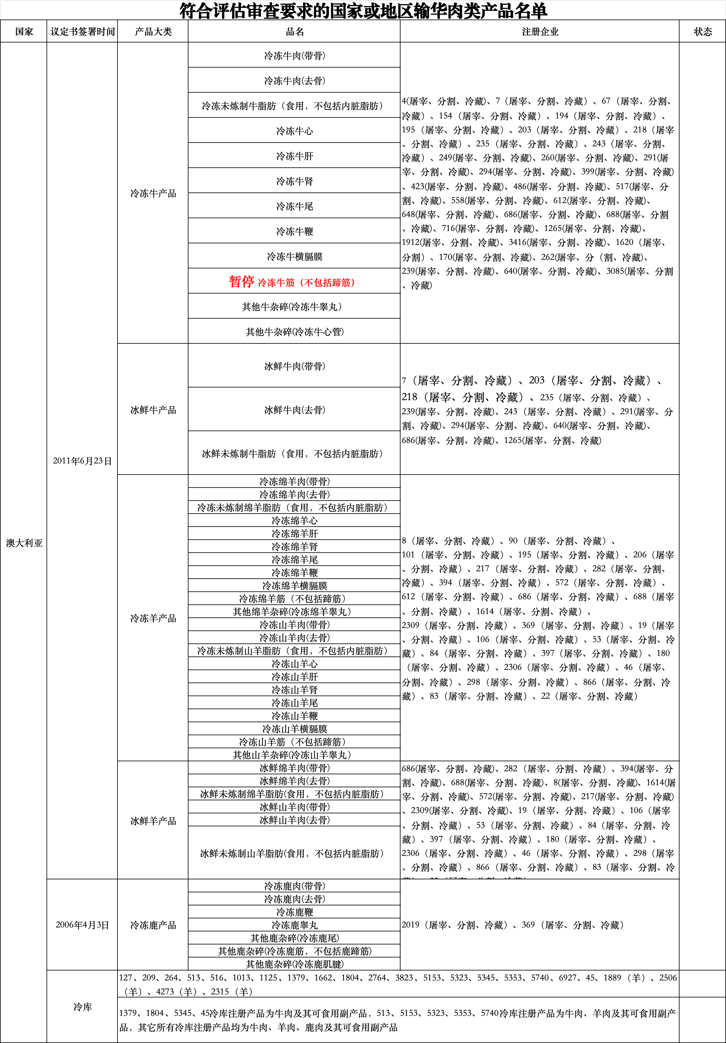 2.新增澳大利亚企业注册编号为83、22、4273(冷库)、2315(冷库)羊肉企业自2025年8月19日及之后生产的符合中国要求的羊肉产品输华。