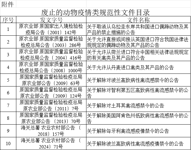 海关总署 农业农村部公告2025年第177号(关于废止动物疫情类规范性文件的公告)