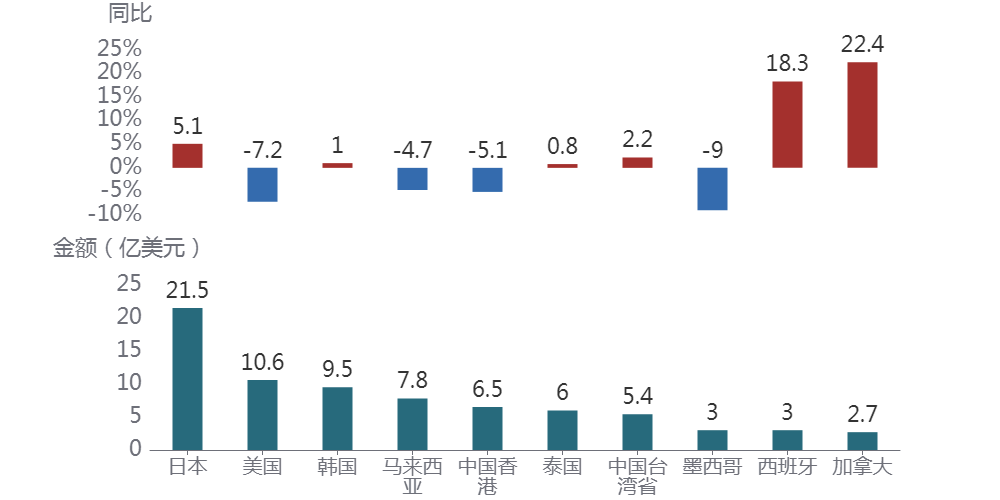 前7个月,厄瓜多尔是我国水海产品及制品进口最主要的市场,进口额为19.1亿美元,同比增长7.3%。7月当月,进口额为3.3亿美元,同比增长20.9%。