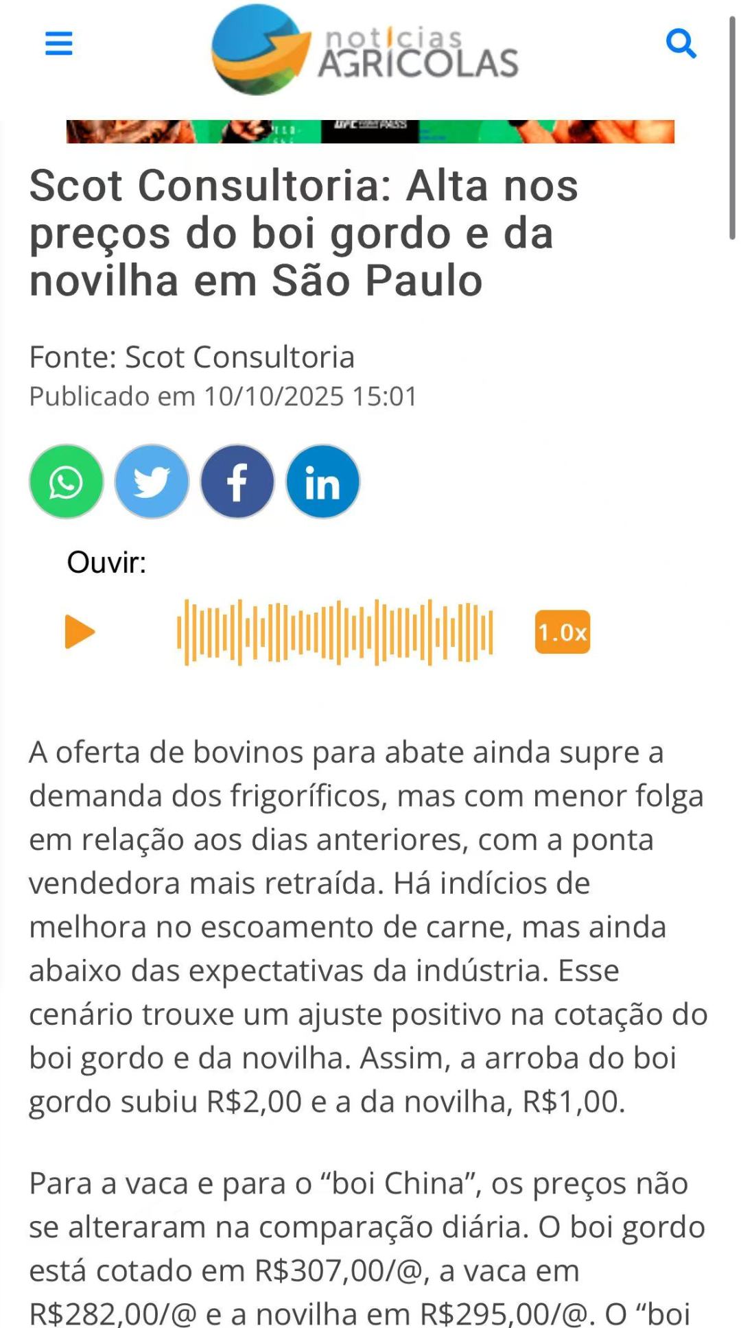 圣保罗州:屠宰用牛供应虽能满足需求,但余量减少,卖方更为谨慎。受此影响,肥牛报价上涨2雷亚尔,至307雷亚尔/阿罗巴;小母牛上涨1雷亚尔,至295雷亚尔/阿罗巴。备受关注的 “中国牛”报价为310雷亚尔/阿罗巴,维持3雷亚尔的溢价。