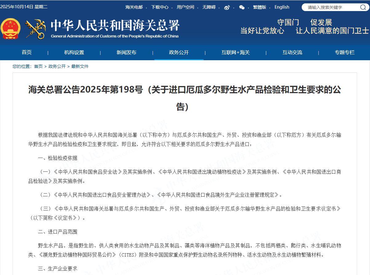 海关总署 | 2025-10-14