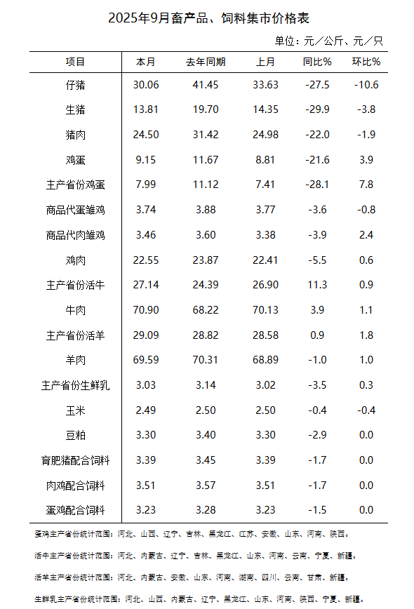捷嘉 ·关注 | 2025年9月全国畜产品和饲料价格情况