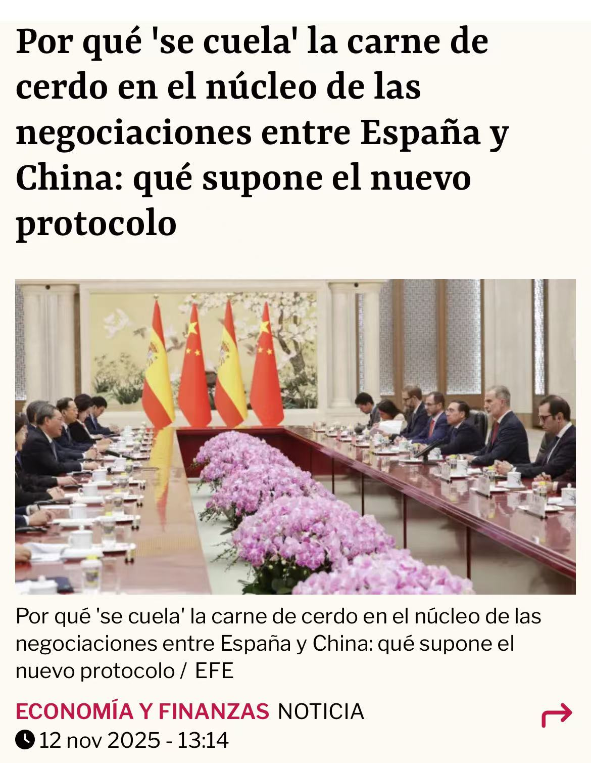 西班牙成为继法国之后第二个与中国达成此类协议的国家。随行访华的西班牙白猪跨专业组织(Interporc)表示,这一协议是行业发展的重大里程碑,体现了政府与企业的协同合作成效,进一步巩固了西班牙在中国市场作为可靠供应商的地位。