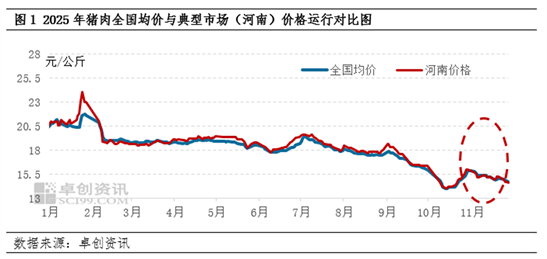 四季度截至11月底,猪肉价格表现呈现宽幅震荡的运行趋势。价格在10月触底后虽有阶段提升,但上升动能有限,11月份猪肉价格再次回落,价格再次迫近年内前低。