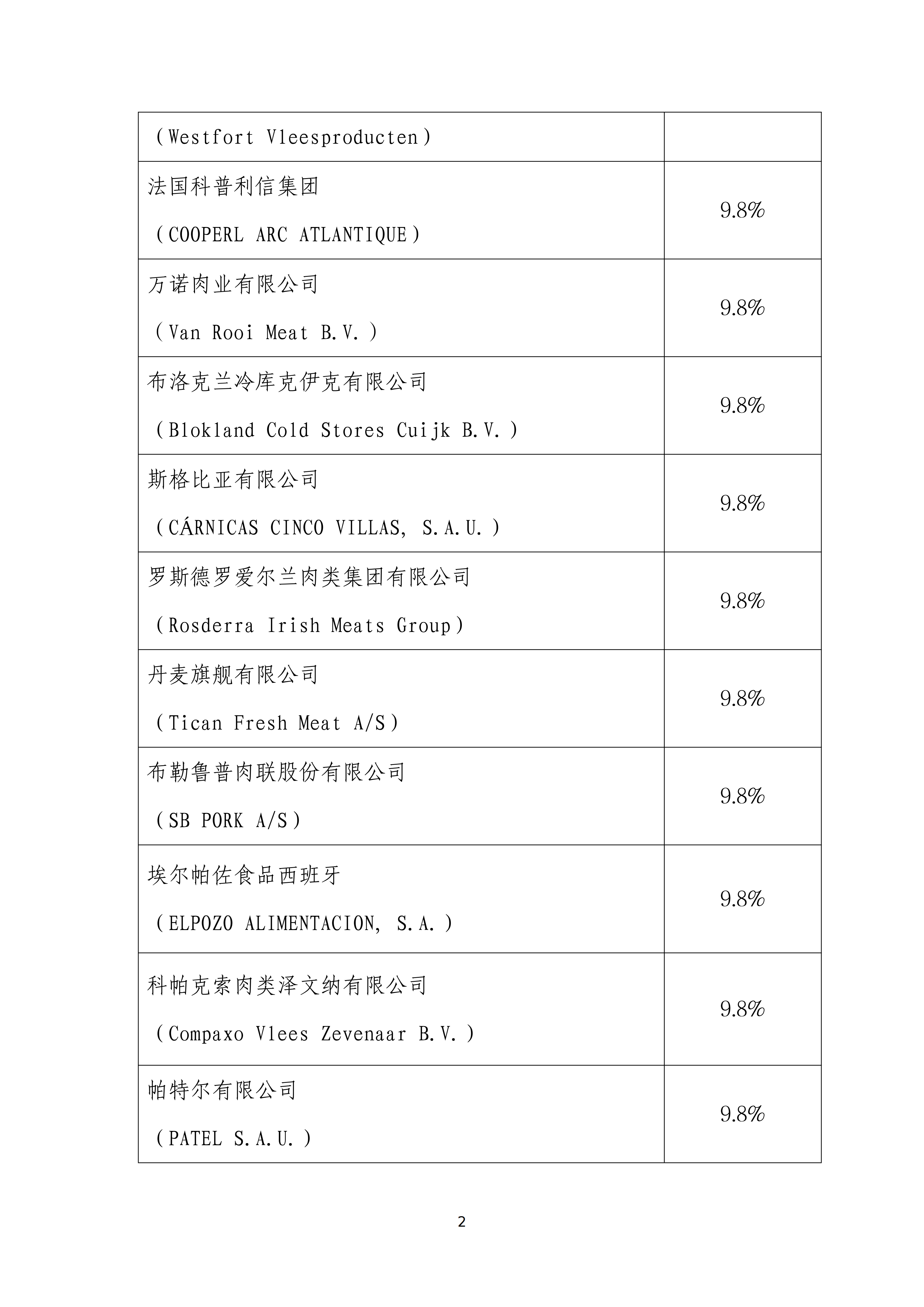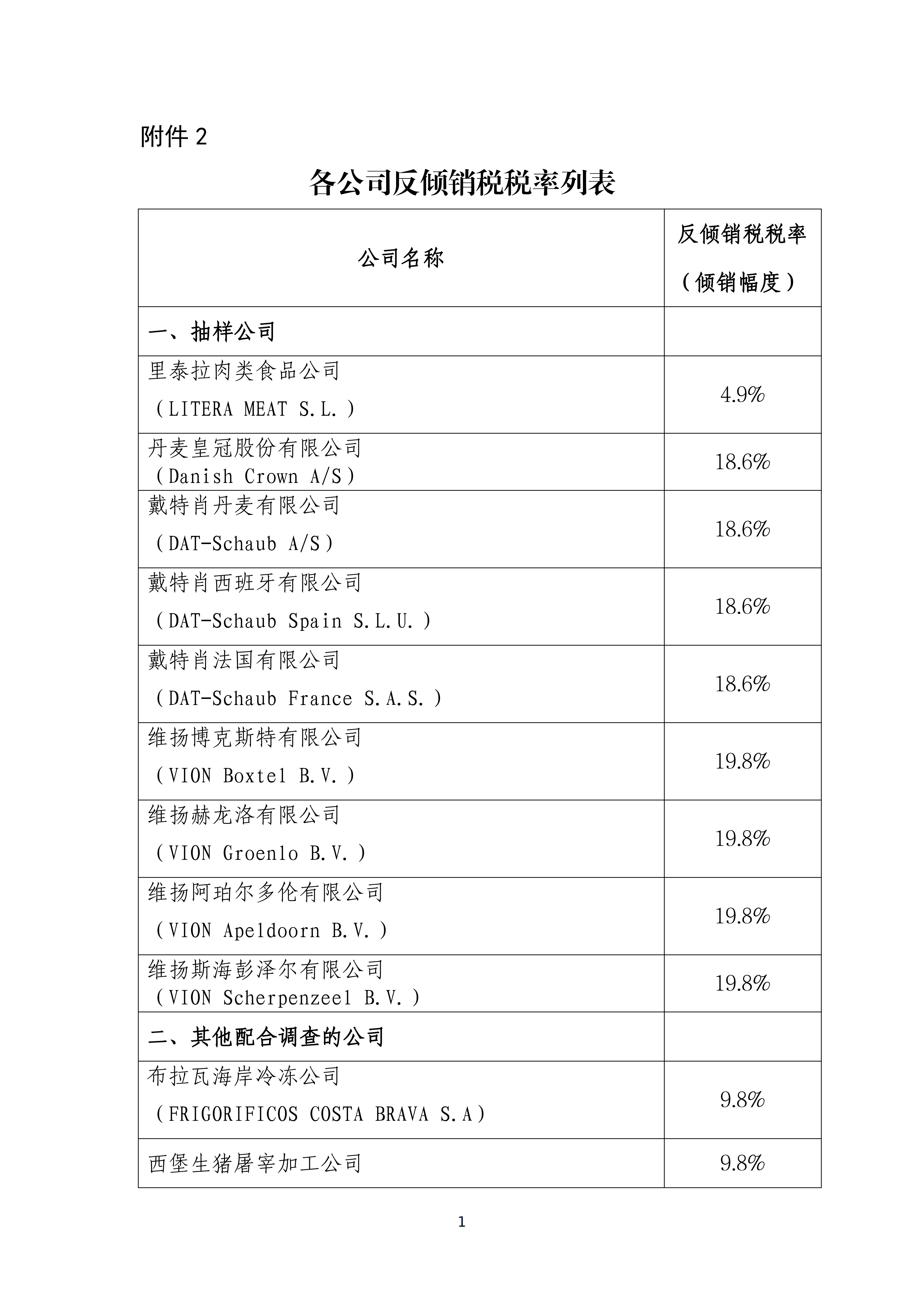 附件1:关于原产于欧盟的进口相关猪肉及猪副产品反倾销调查的最终裁定