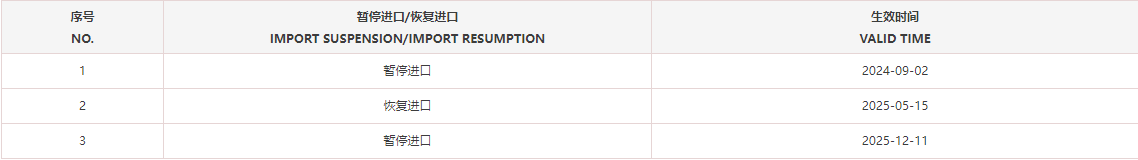 • 海关总署 | 分别对越南和澳大利亚的1家企业采取紧急预防性措施