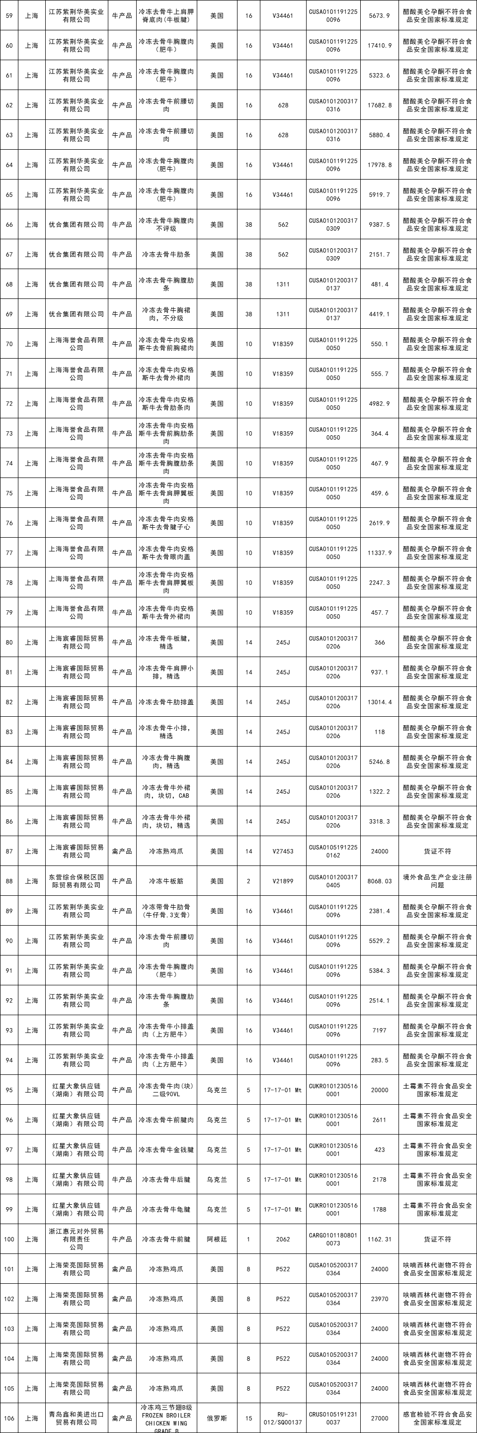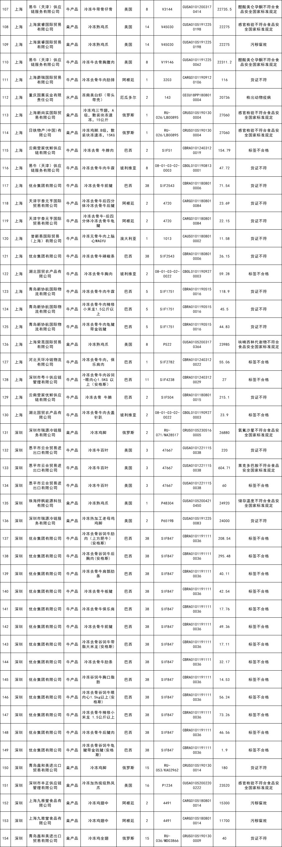 捷嘉特将未准入境的猪、牛、羊、禽、水产品筛选出来,以便大家查看~其中牛产品107票;禽产品86票;水产品73票,猪产品和羊产品本月为0。
