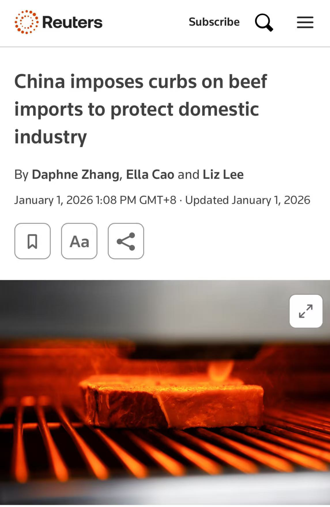 此项措施旨在应对进口增长对国内产业的影响,预计将促使中国牛肉进口总量在2026年有所下降,全球主要出口国的对华贸易结构可能面临新一轮调整。