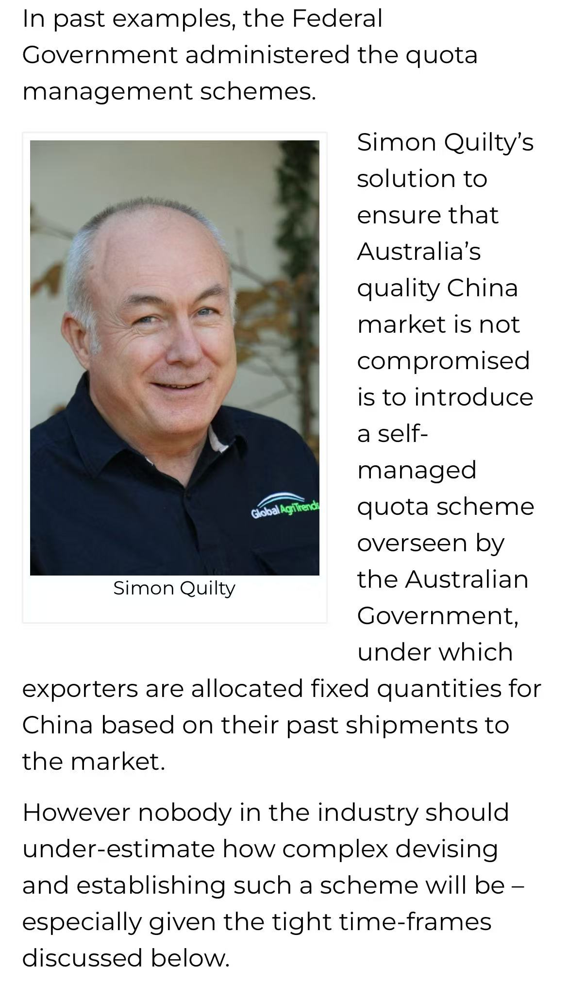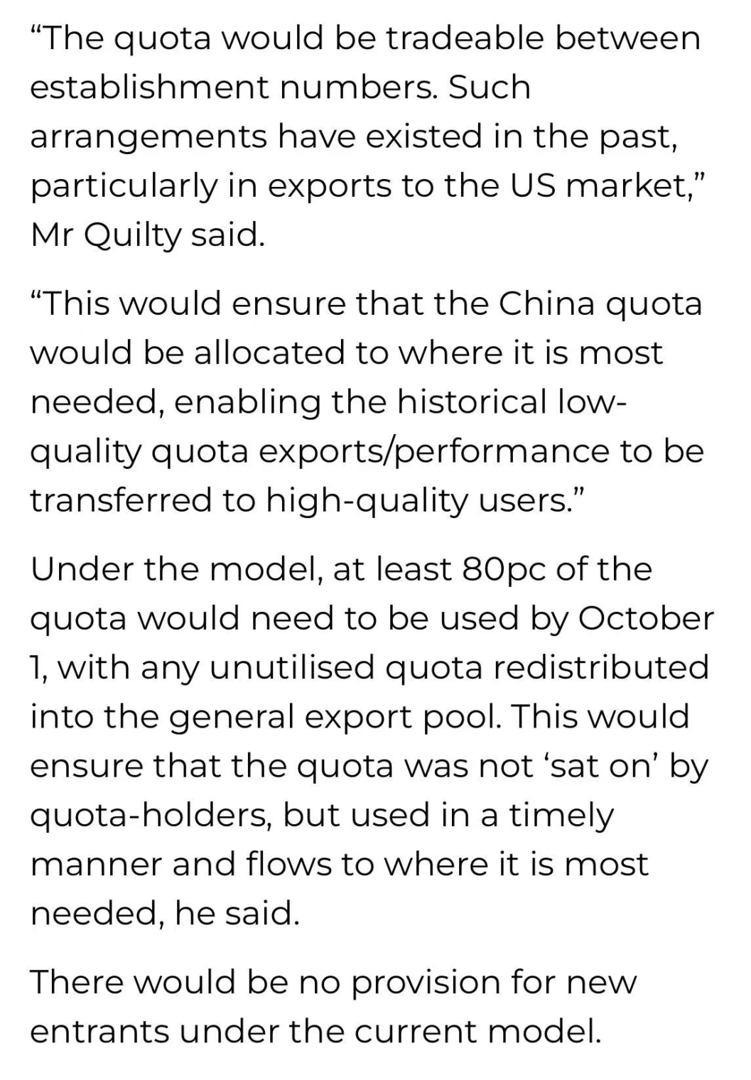 行业指出,自主管理有助于全年均衡供应,避免年底市场空缺,甚至可能在别国配额用尽后获得更高溢价。历史上,澳大利亚曾在对美、对韩贸易中成功实施类似机制,如今面对中国新规,行业正争取以协作方式降低冲击,保持市场地位。