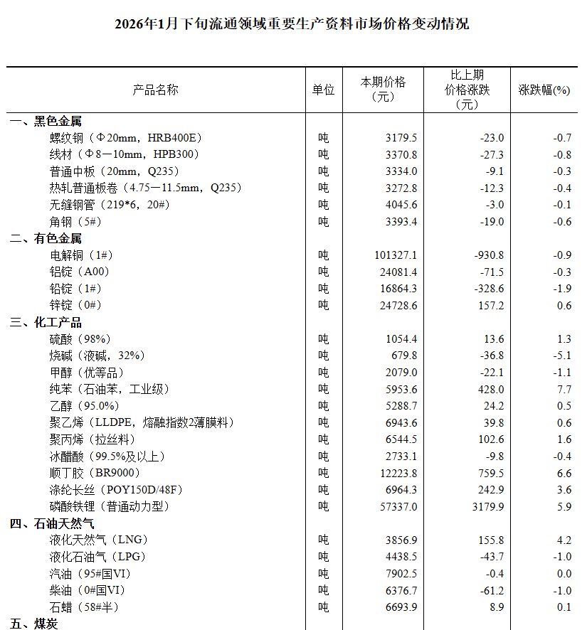 据对全国流通领域9大类50种重要生产资料市场价格的监测显示,2026年1月下旬与1月中旬相比,25种产品价格上涨,21种下降,4种持平。其中,生猪(外三元)价格为12.7元/千克,环比下降1.6%。