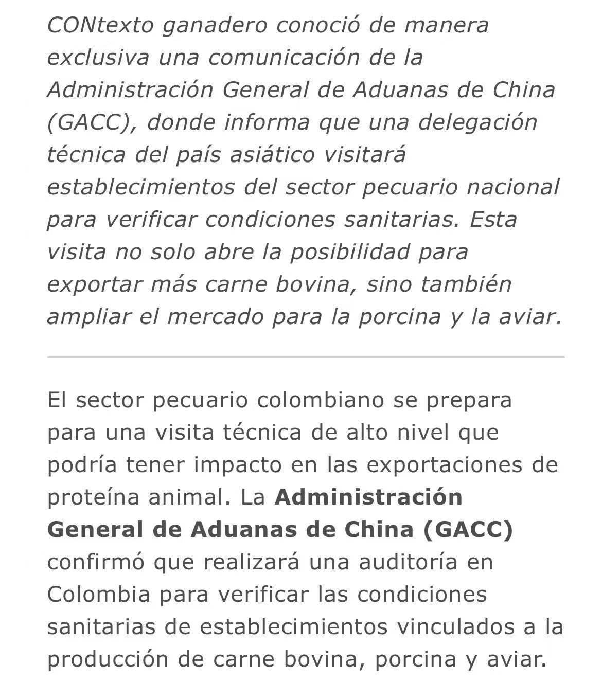 据外媒称:中国海关技术代表团计划于今年4月底至5月初赴哥伦比亚,对当地4家肉类加工厂开展现场卫生审计。这是哥伦比亚肉类行业等待约一年半的关键进展。
