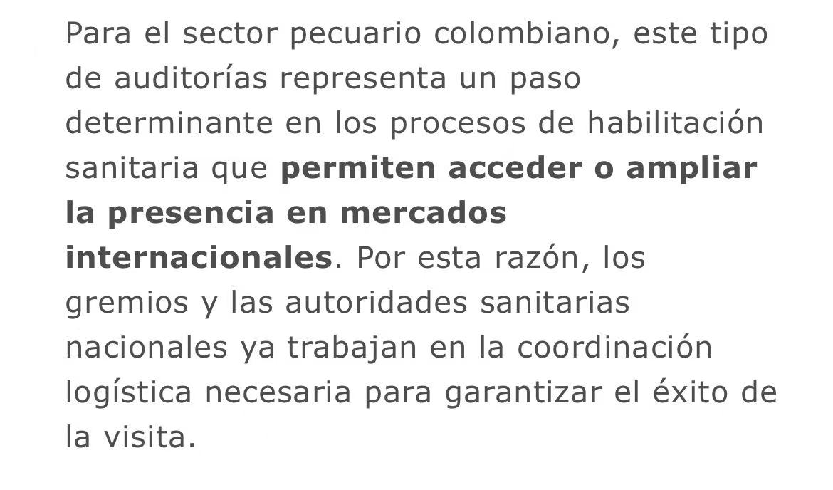 哥伦比亚畜牧业协会表示,此次审计是推动更多工厂获得对华出口资质的重要一步。目前哥伦比亚牛肉已实现对华出口,但猪肉和禽肉尚未获准进入中国市场。