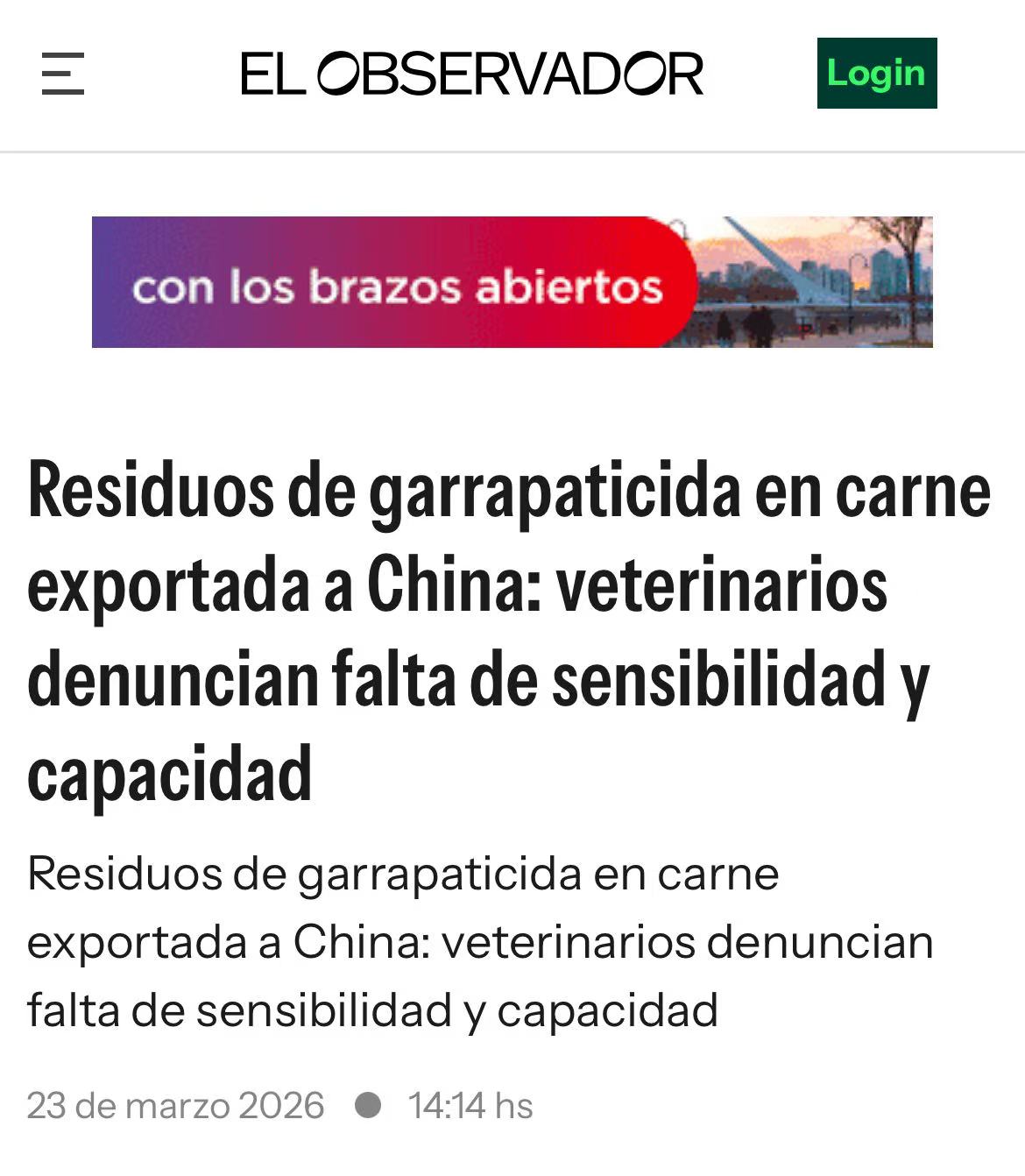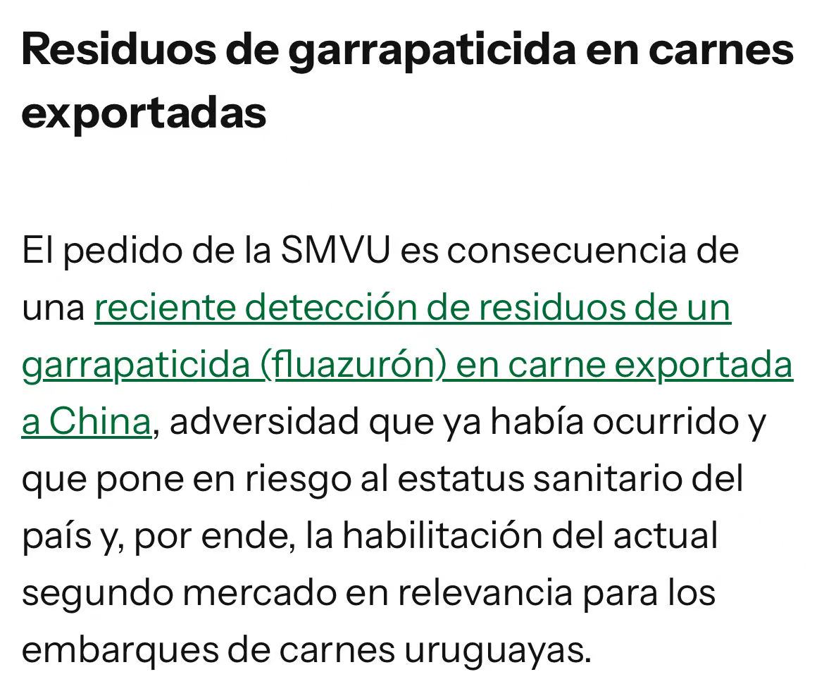 近期,乌拉圭出口至中国的牛肉中检测出灭蜱剂(氟虫脲)残留。这并非首次发生此类事件,引发乌拉圭兽医行业的高度关注。