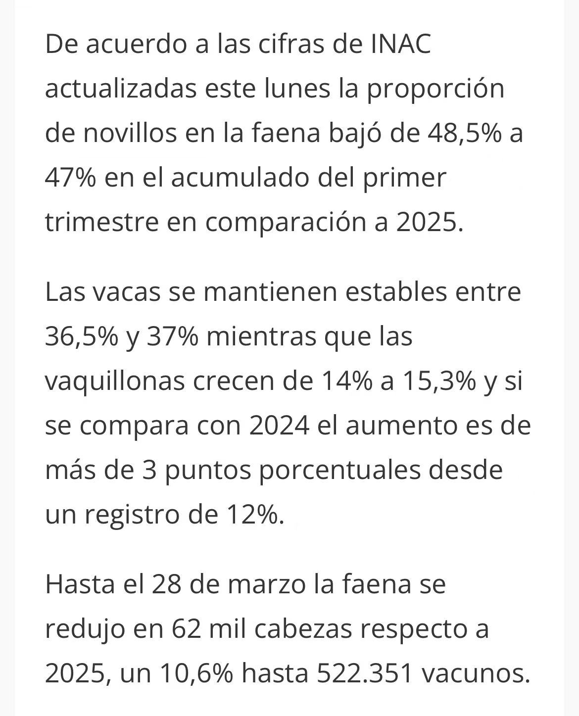乌拉圭国家肉类协会(INAC)最新数据显示,截至3月28日,2026年一季度牛只累计屠宰量52.2万头,较去年同期减少6.2万头,降幅达10.6%。