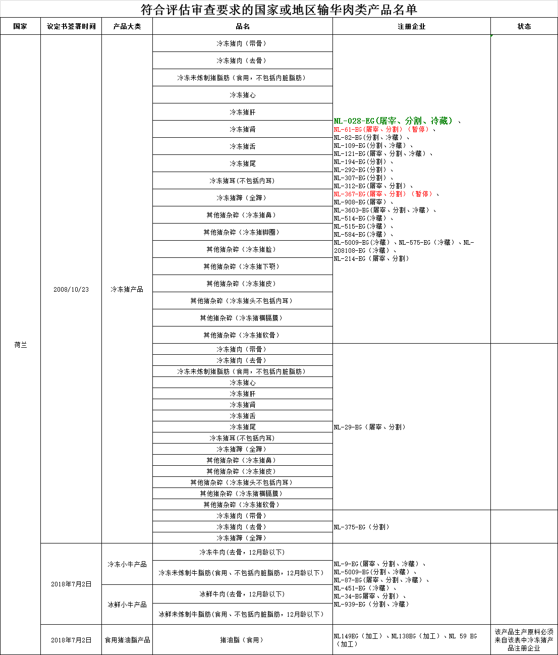 海关总署 |【准入更新】恢复荷兰1家肉企产品输华;接受阿根廷2家肉企产品输华,须随附卫生证及其《附加声明》(2020年8月28日)