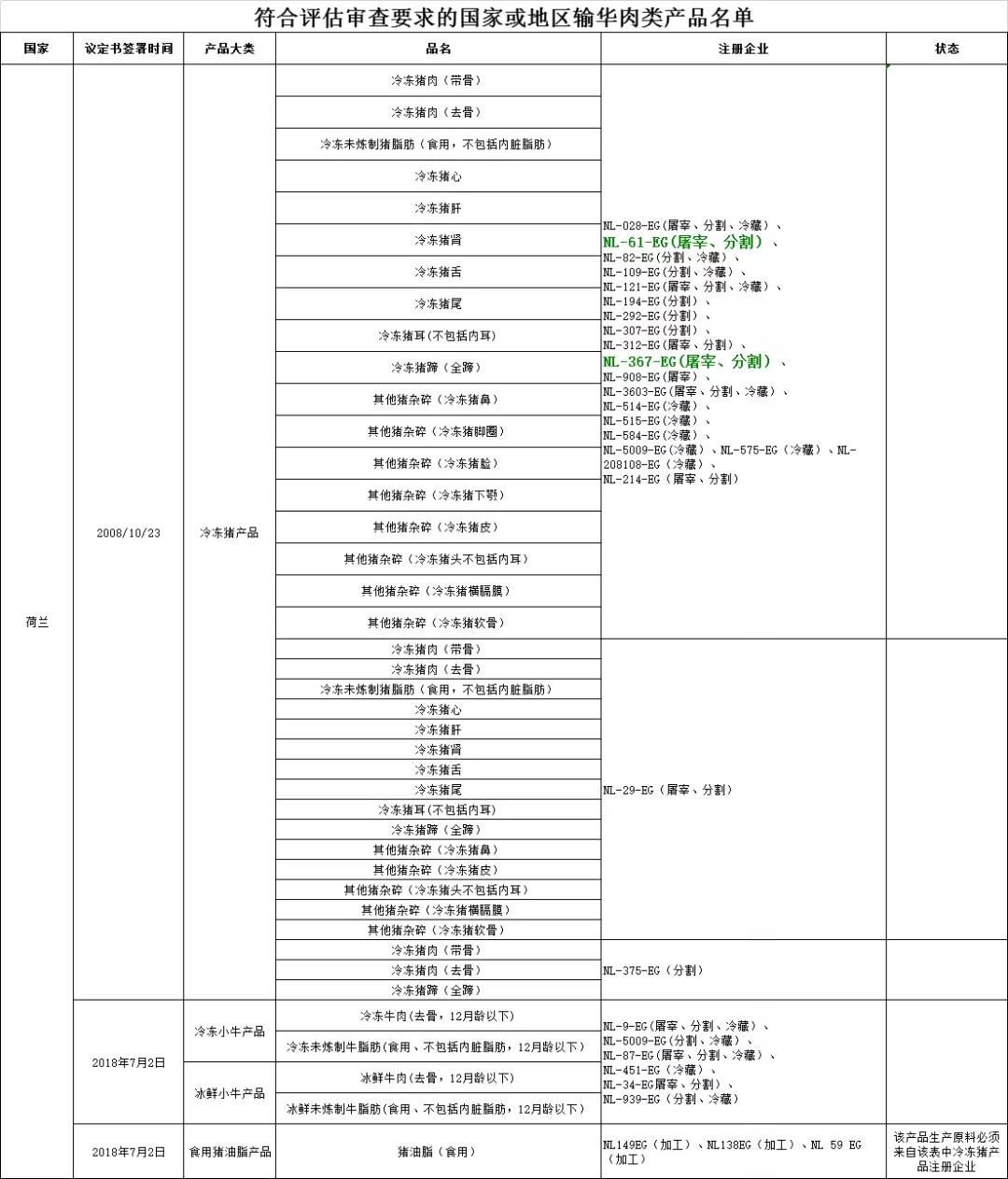 ⬆ 恢复荷兰注册号为NL-61-EG和NL-367-EG的猪肉企业自2020年9月17日及以后生产的符合中国要求的猪肉产品输华。