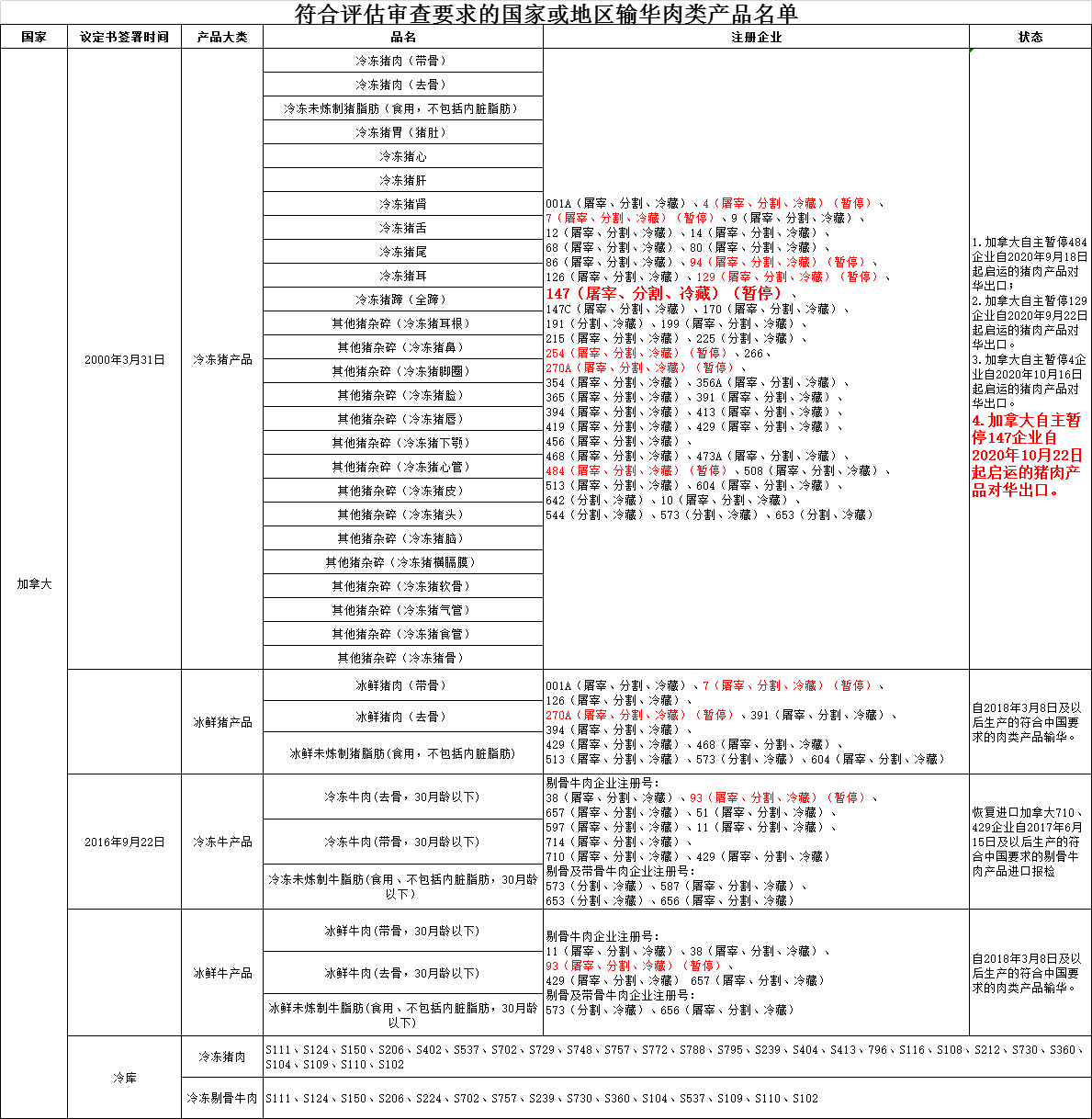 海关总署 |【准入更新】丹麦与加拿大分别自主暂停1家猪肉企业产品输华(2020年10月29日)