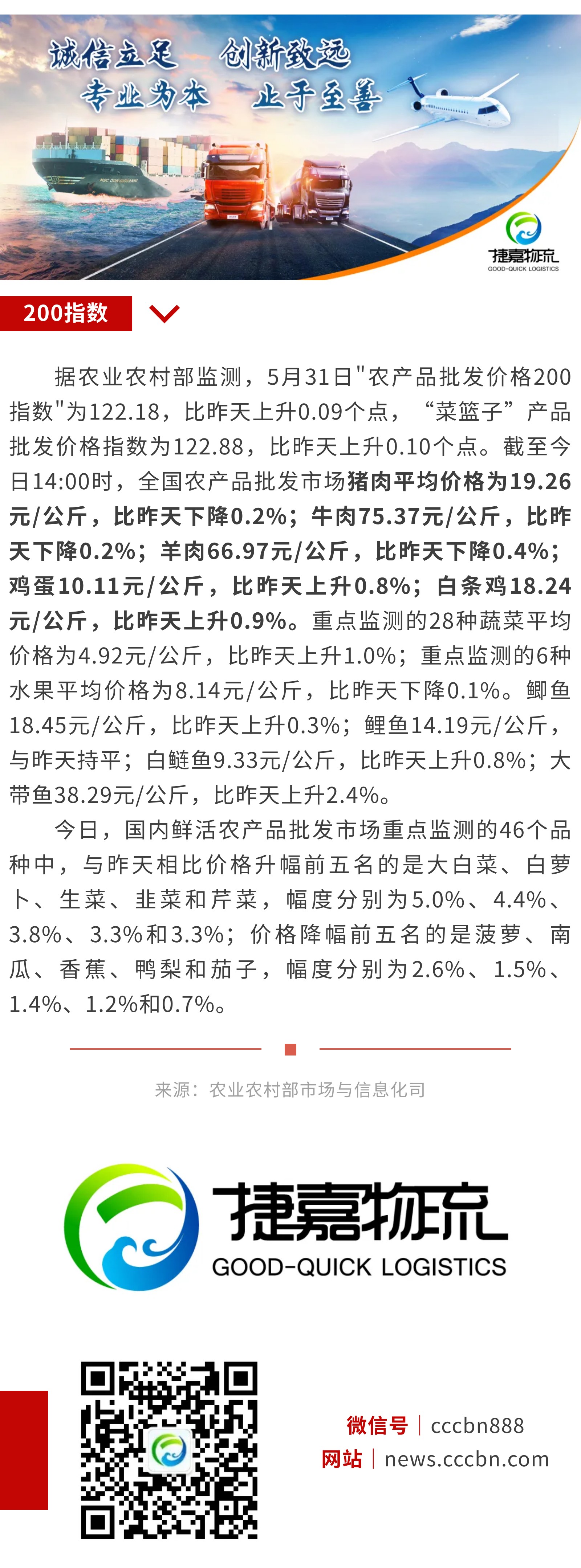 5月31日:"农产品批发价格200指数"比昨天上升0.09个点