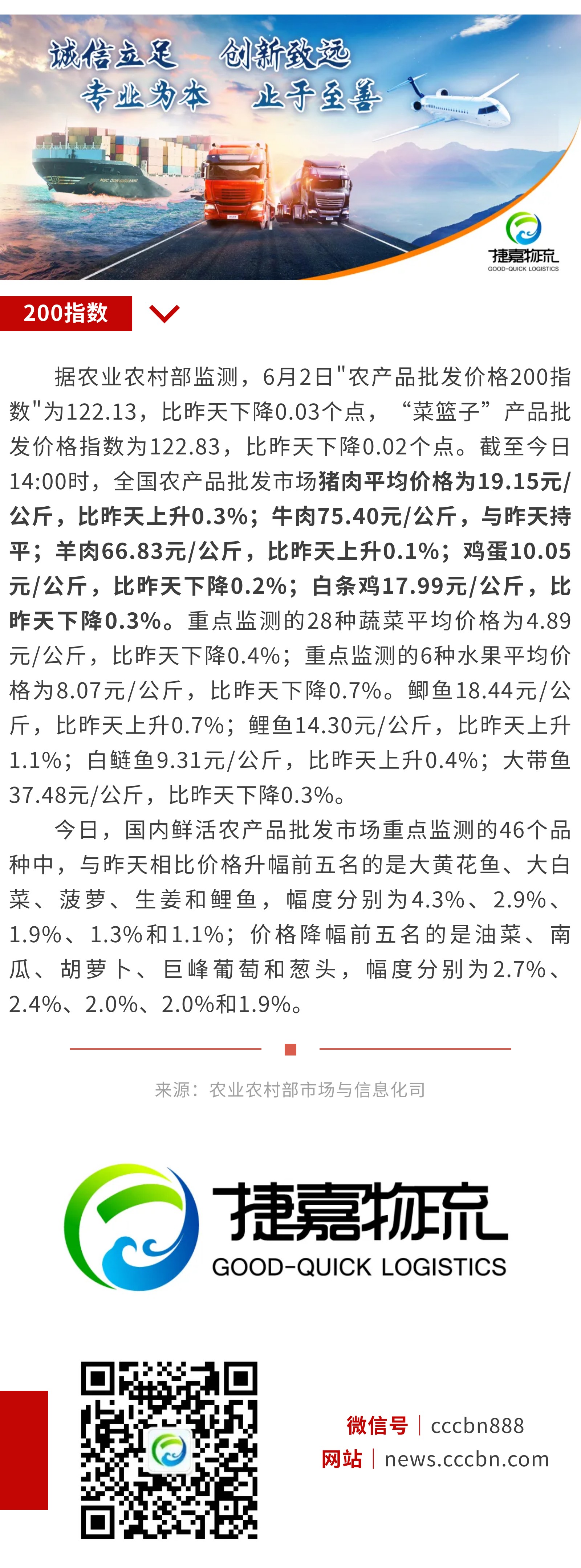 6月2日:"农产品批发价格200指数"比昨天下降0.03个点