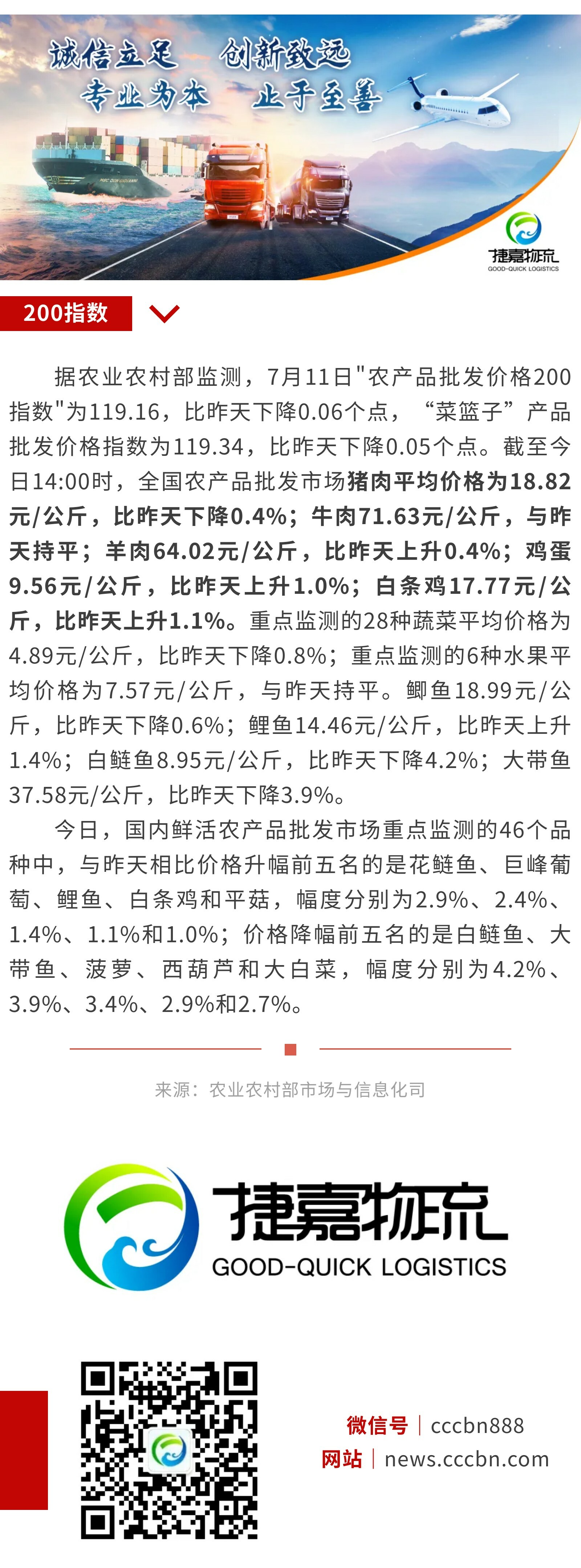 7月11日:"农产品批发价格200指数"比昨天下降0.06个点