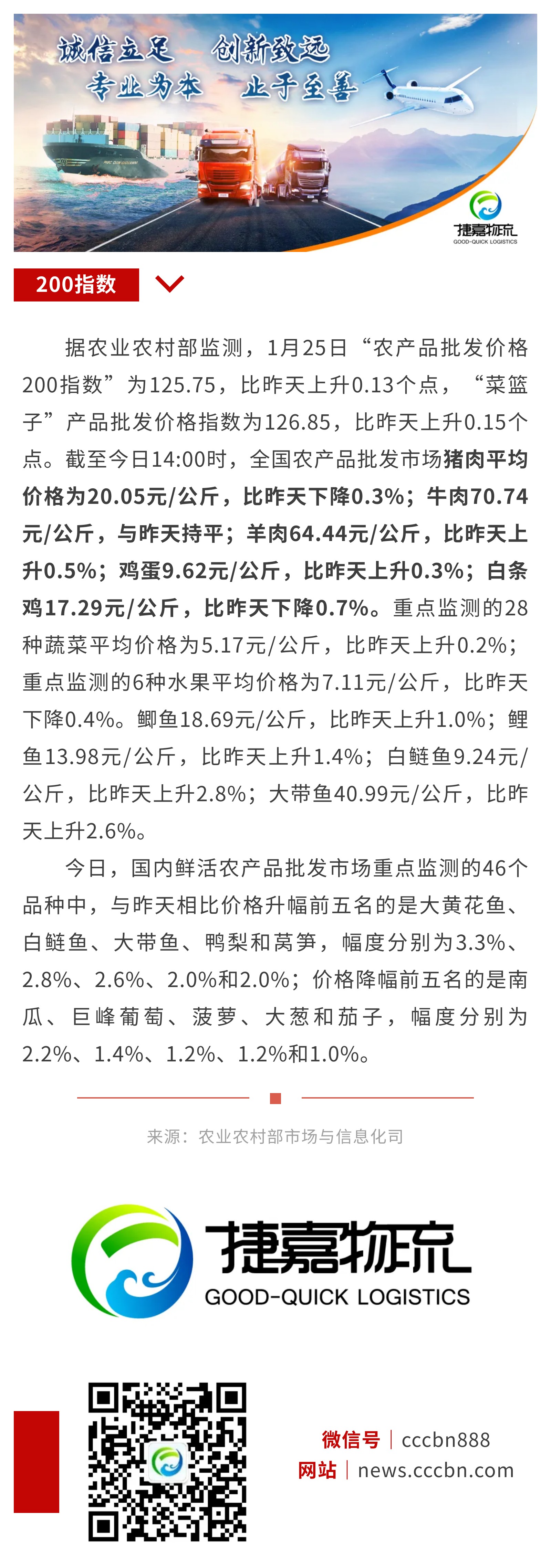 1月25日:“农产品批发价格200指数”比昨天上升0.13个点