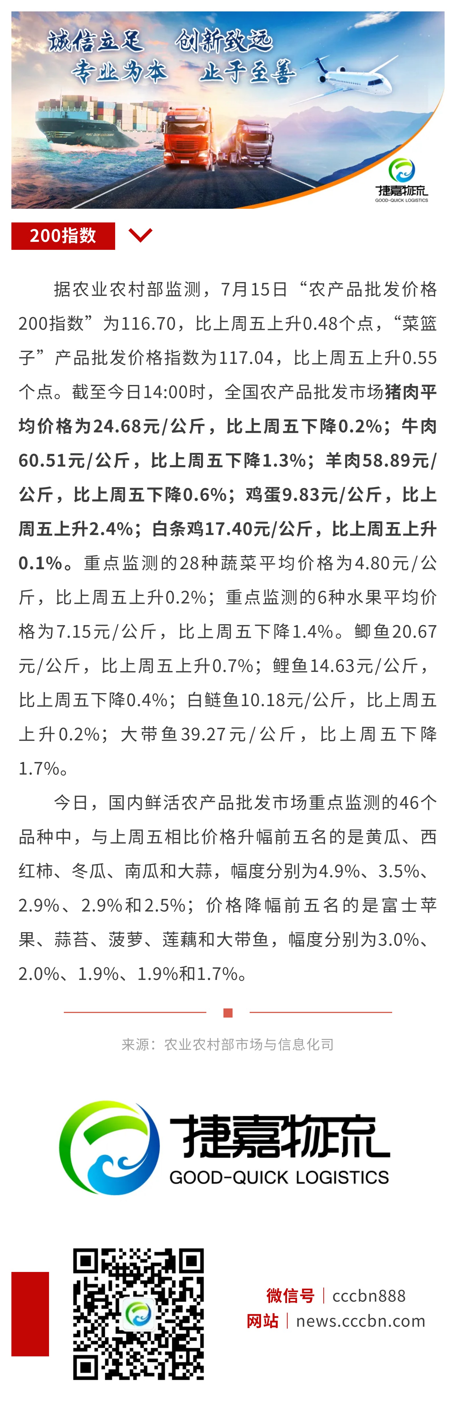 7月15日:“农产品批发价格200指数”比上周五上升0.48个点