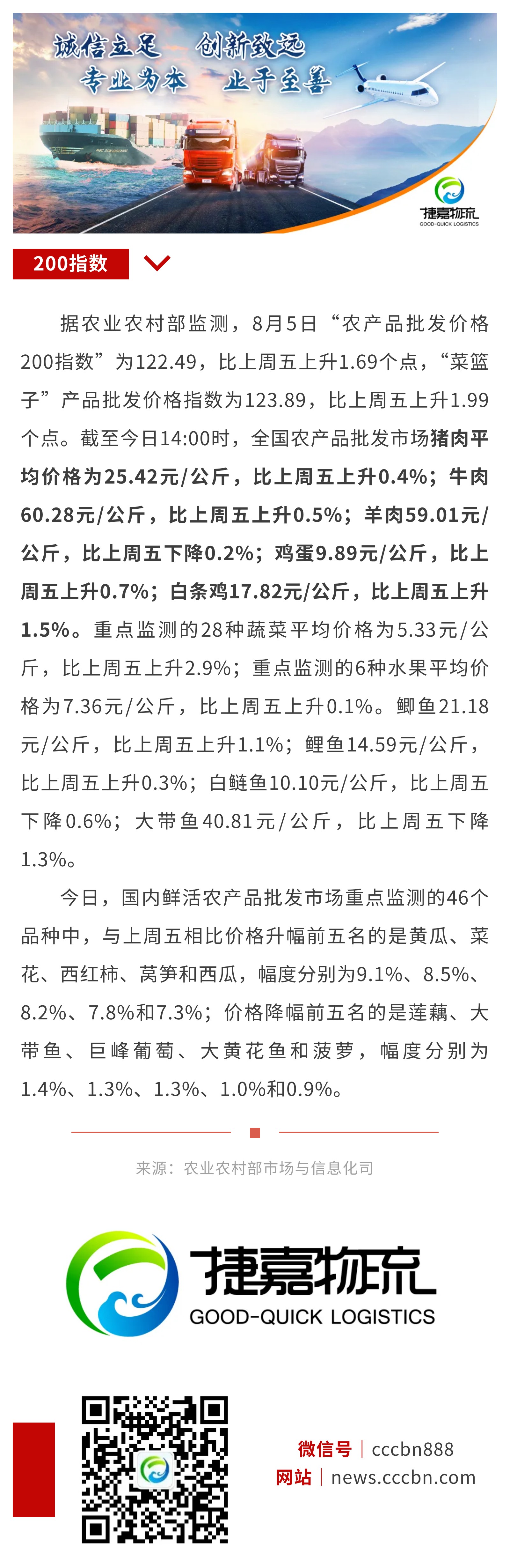 8月5日:“农产品批发价格200指数”比上周五上升1.69个点