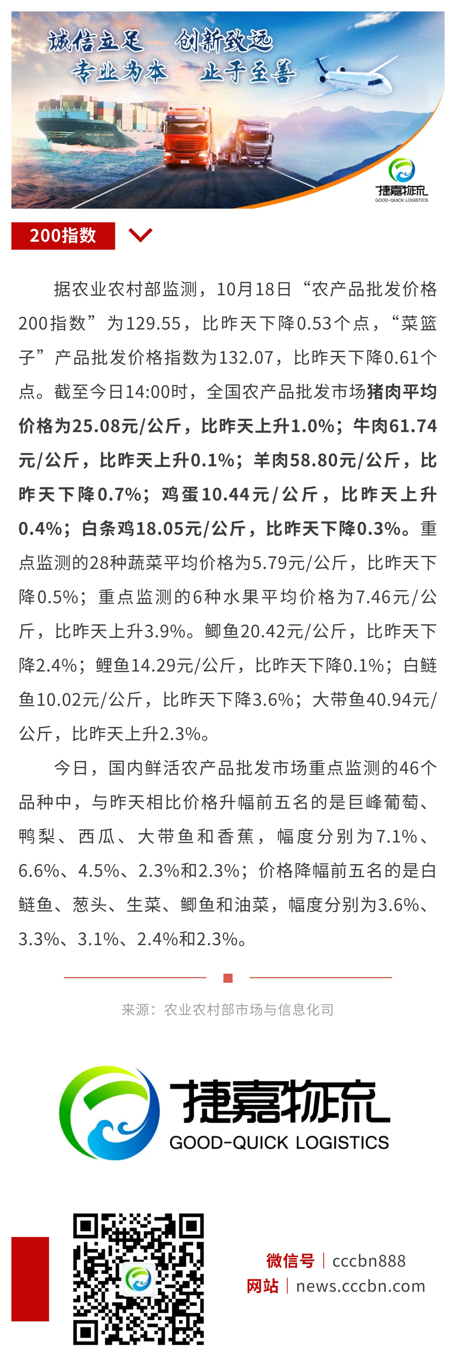 10月18日:“农产品批发价格200指数”比昨天下降0.53个点