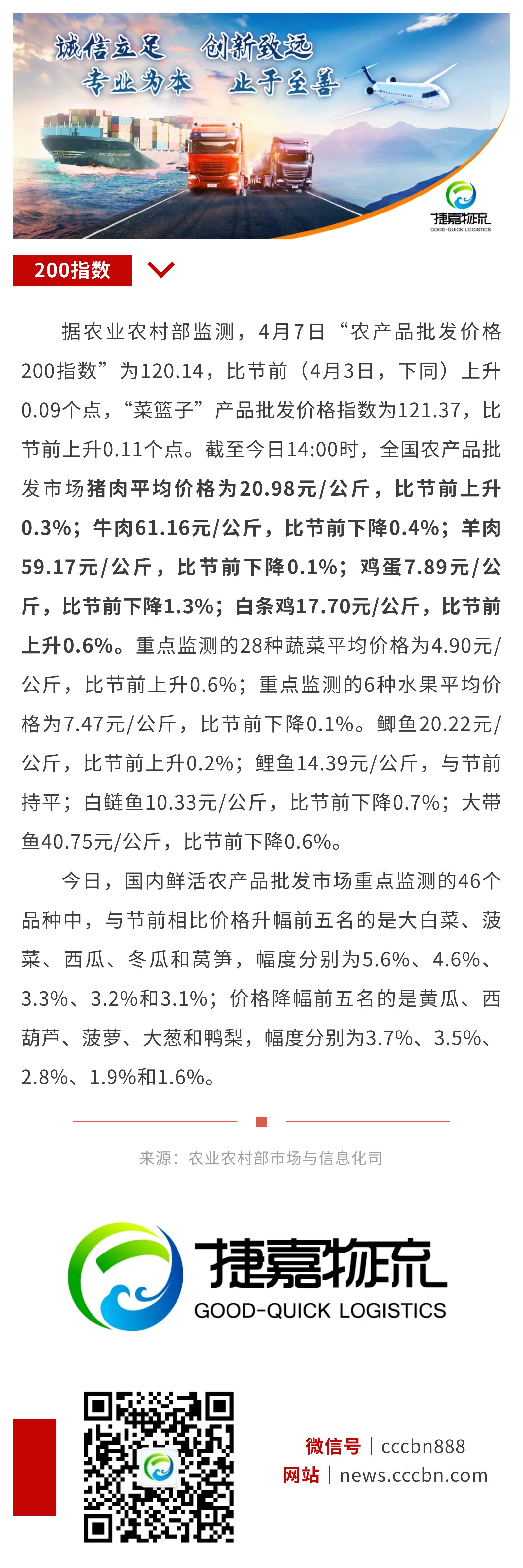 4月7日:“农产品批发价格200指数”比节前上升0.09个点