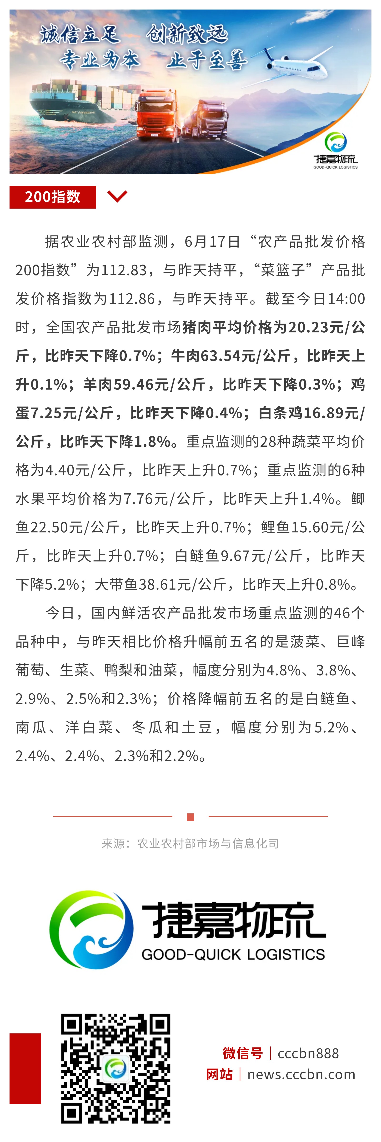 1月7日:“农产品批发价格200指数”比昨天下降0.17个点