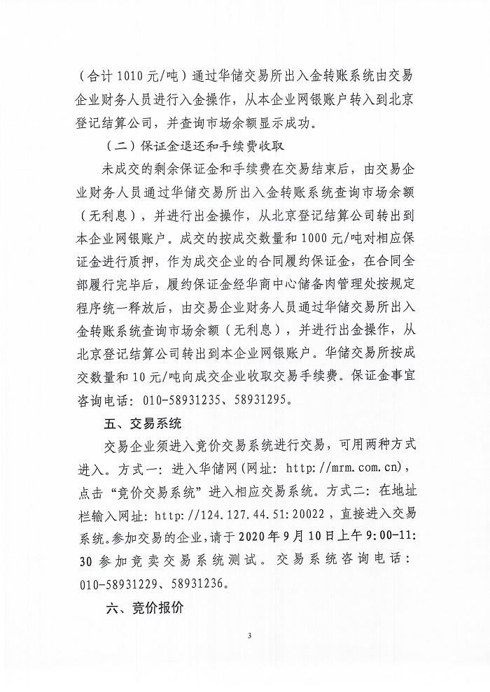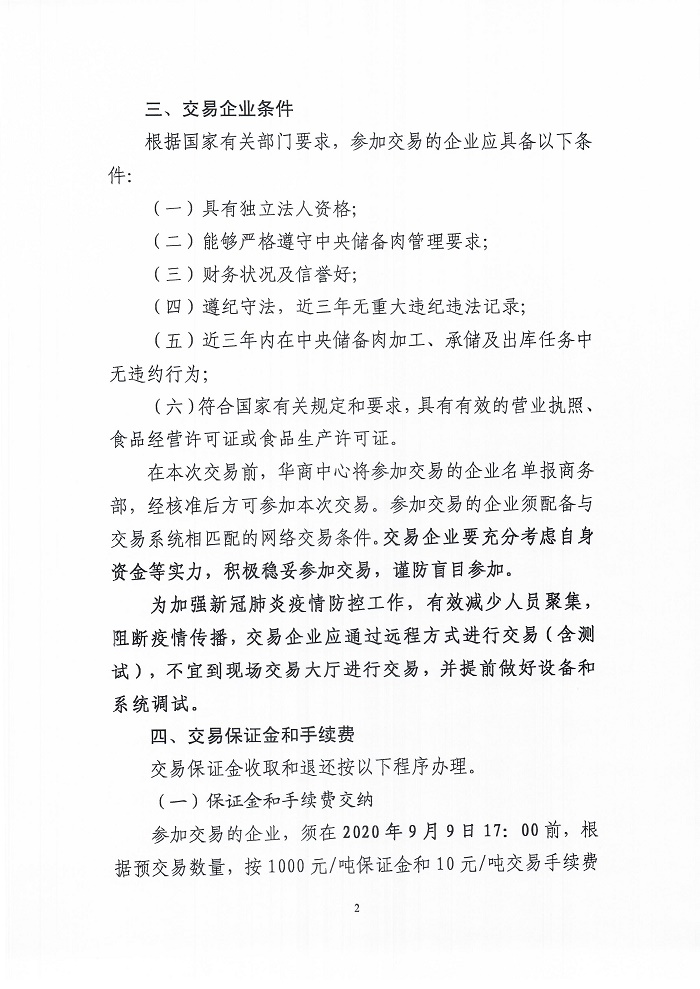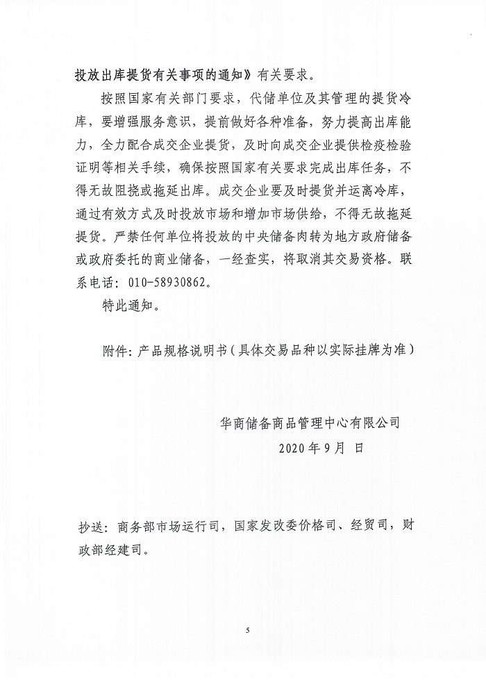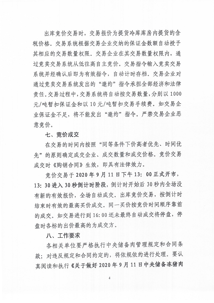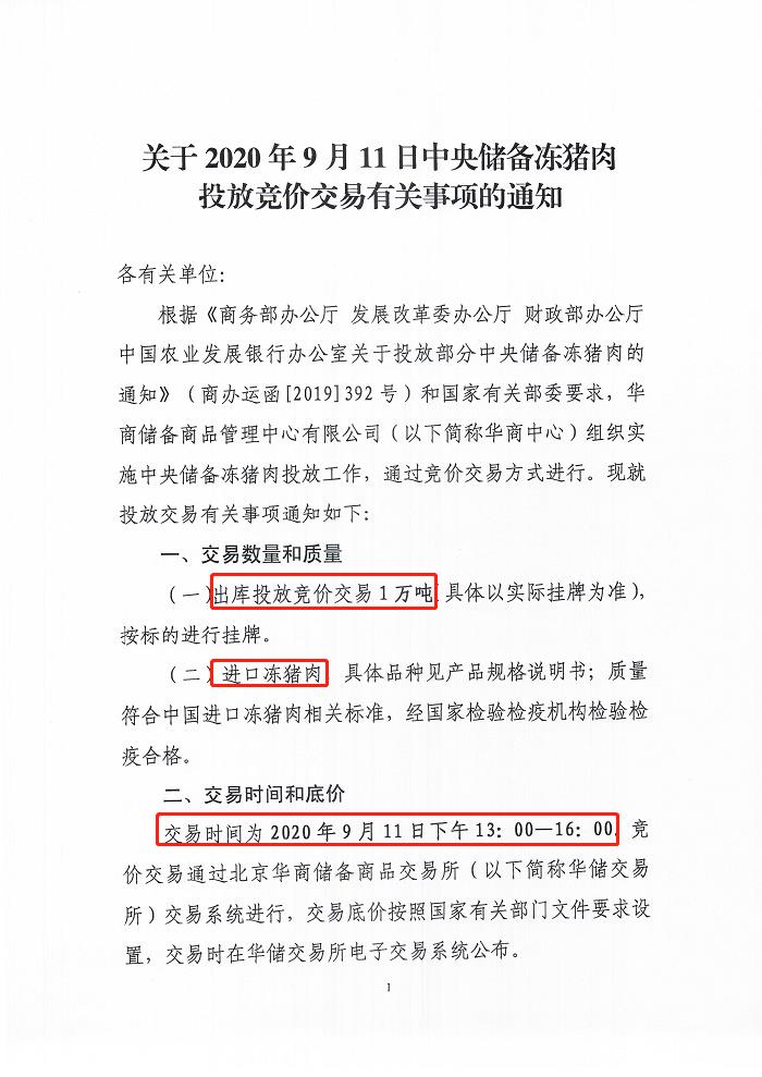 关于2020年9月11日中央储备冻猪肉投放竞价交易有关事项的通知