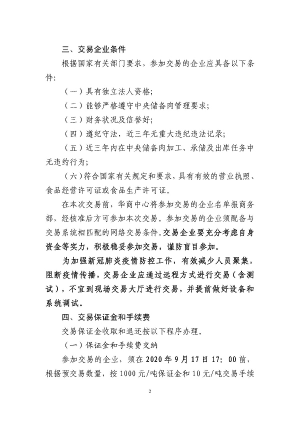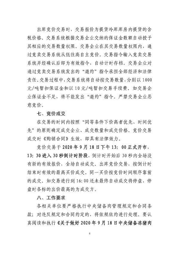 关于做好2020年9月18日中央储备冻猪肉投放竞价交易有关事项的通知