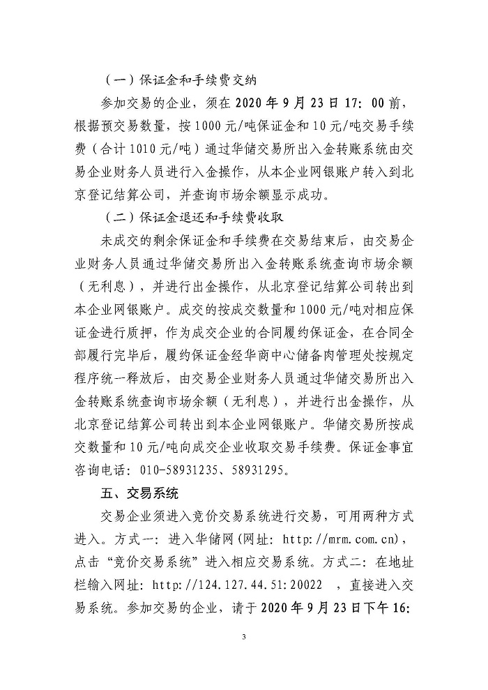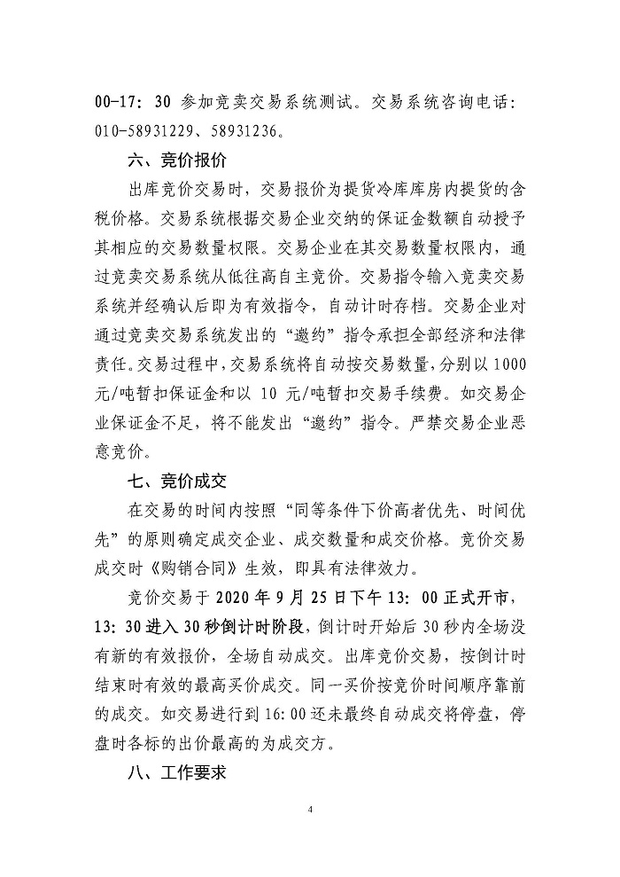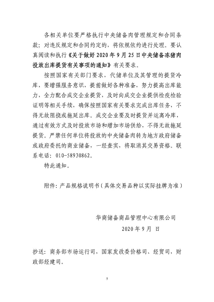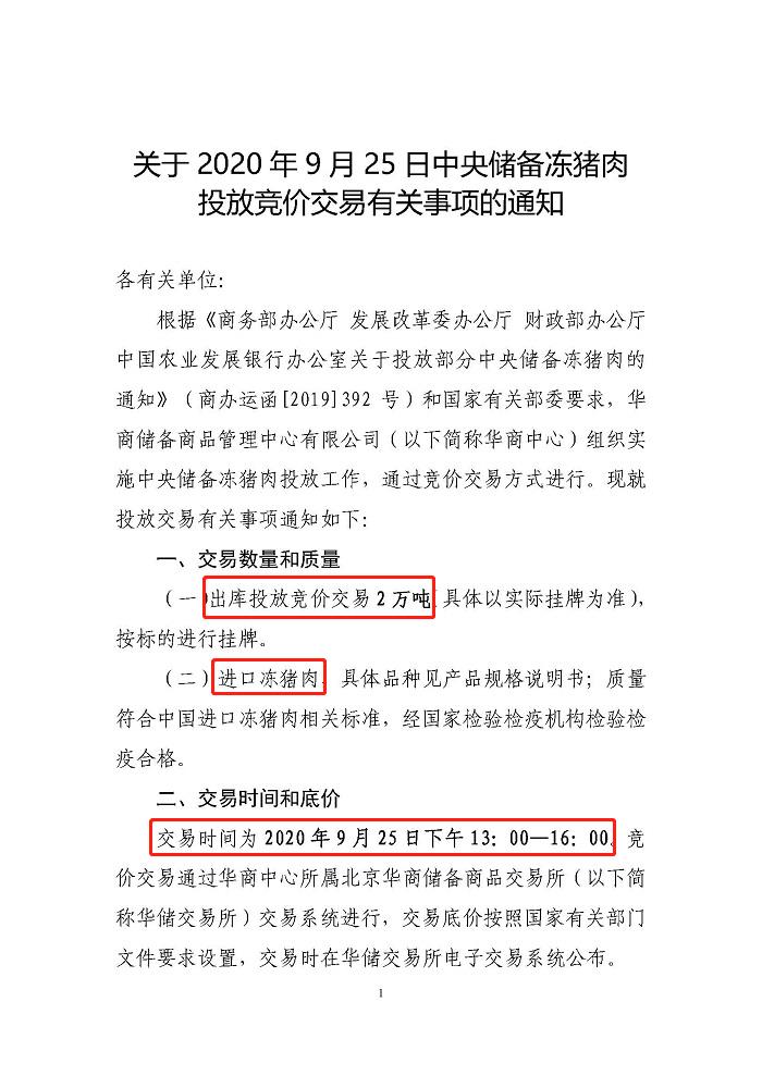 关于2020年9月25日中央储备冻猪肉投放竞价交易有关事项的通知